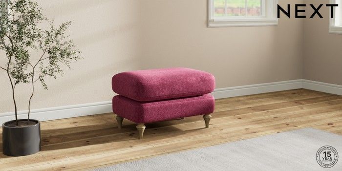 7.0.3 Buy Sadie Deep Relaxed Sit Footstool Cotswold Chenille Dark Raspberry Pink High Slim Turned - Light from the Next UK online shop Click here to use our accessible website
