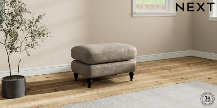 7.0.3 Buy Sadie Deep Relaxed Sit Footstool Cotswold Chenille Mid Mink Brown High Slim Turned - Dark from the Next UK online shop Click here to use our accessible website