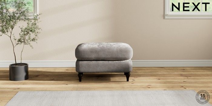 6.12.1 Buy Sadie Deep Relaxed Sit Footstool Distressed Velour French Grey High Slim Turned - Dark from the Next UK online shop Click here to use our accessible website