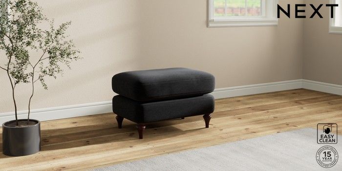 7.0.3 Buy Sadie Deep Relaxed Sit Footstool Fine Chenille Easy Clean Black High Slim Turned - Dark Brown from the Next UK online shop Click here to use our accessible website