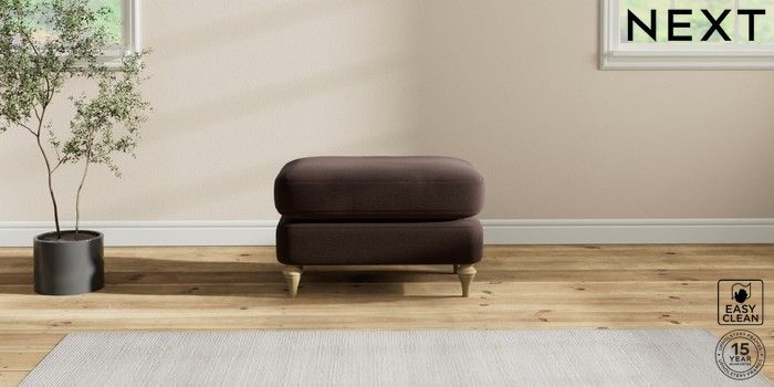6.12.1 Buy Sadie Deep Relaxed Sit Footstool Fine Chenille Easy Clean Chocolate Brown High Slim Turned - Light from the Next UK online shop Click here to use our accessible website