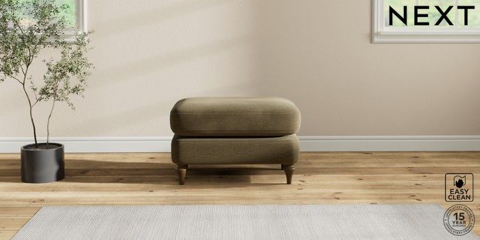 6.12.1 Buy Sadie Deep Relaxed Sit Footstool Fine Chenille Easy Clean Dark Moss Green High Slim Turned - Mid from the Next UK online shop Click here to use our accessible website