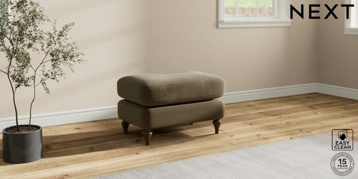 7.0.3 Buy Sadie Deep Relaxed Sit Footstool Fine Chenille Easy Clean Dark Moss Green High Slim Turned - Mid from the Next UK online shop Click here to use our accessible website