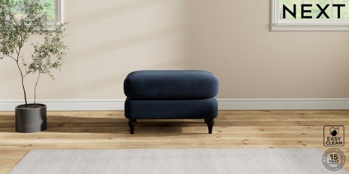 6.12.1 Buy Sadie Deep Relaxed Sit Footstool Fine Chenille Easy Clean Dark Navy Blue High Slim Turned - Dark from the Next UK online shop Click here to use our accessible website