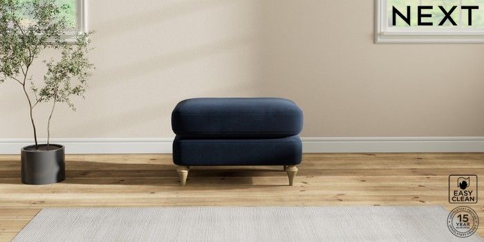 6.12.1 Buy Sadie Deep Relaxed Sit Footstool Fine Chenille Easy Clean Dark Navy Blue High Slim Turned - Light from the Next UK online shop Click here to use our accessible website