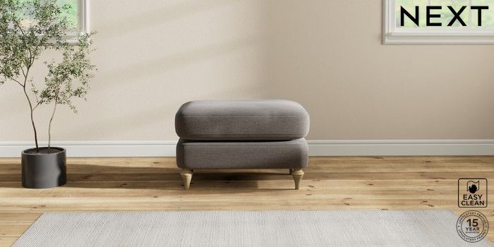 6.12.1 Buy Sadie Deep Relaxed Sit Footstool Fine Chenille Easy Clean Dark Smoke Grey High Slim Turned - Light from the Next UK online shop Click here to use our accessible website
