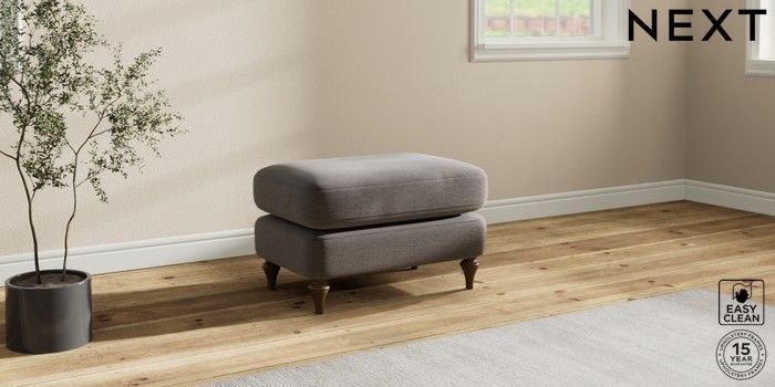 7.0.3 Buy Sadie Deep Relaxed Sit Footstool Fine Chenille Easy Clean Dark Smoke Grey High Slim Turned - Mid from the Next UK online shop Click here to use our accessible website