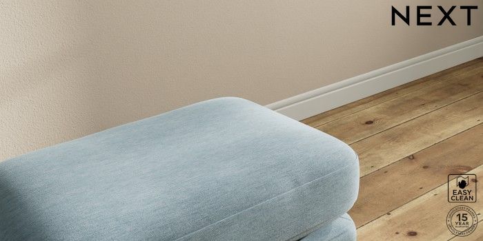 7.0.3 Buy Sadie Deep Relaxed Sit Footstool Fine Chenille Easy Clean Mid Blue High Slim Turned - Dark from the Next UK online shop Click here to use our accessible website