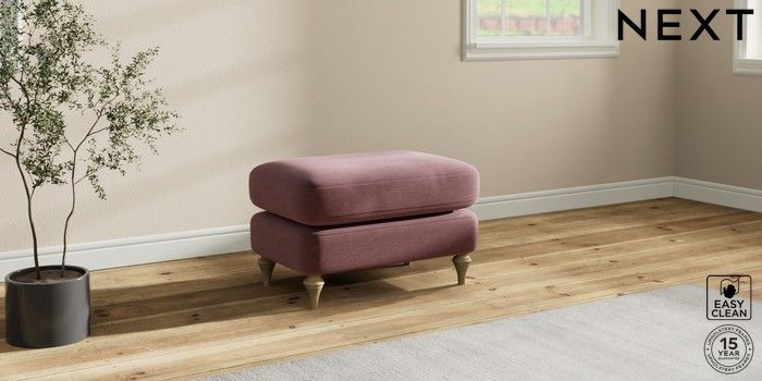 7.0.3 Buy Sadie Deep Relaxed Sit Footstool Fine Chenille Easy Clean Mid Mulberry Purple High Slim Turned - Light from the Next UK online shop Click here to use our accessible website