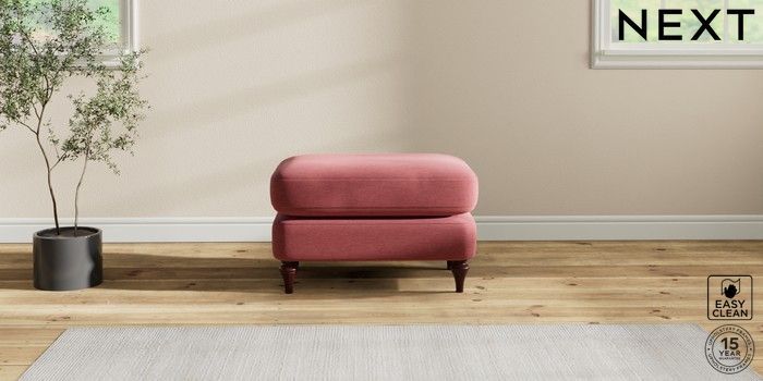 6.12.1 Buy Sadie Deep Relaxed Sit Footstool Fine Chenille Easy Clean Mid Pink High Slim Turned - Dark Brown from the Next UK online shop Click here to use our accessible website