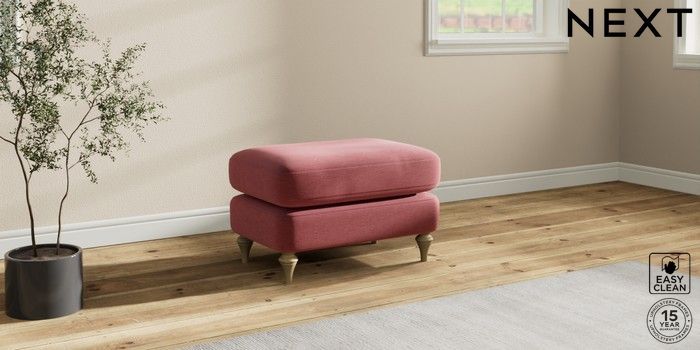7.0.3 Buy Sadie Deep Relaxed Sit Footstool Fine Chenille Easy Clean Mid Pink High Slim Turned - Light from the Next UK online shop Click here to use our accessible website