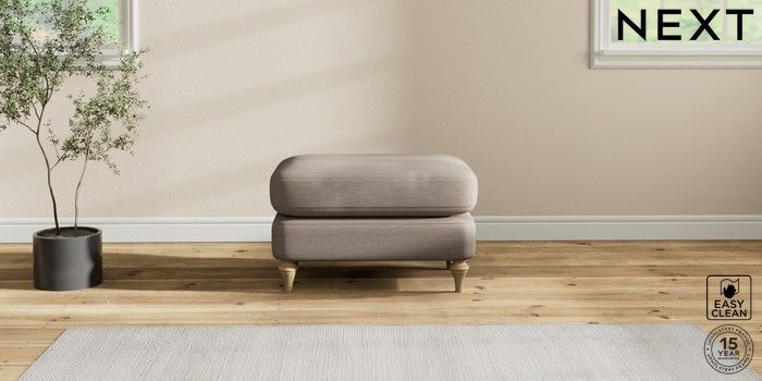 6.12.1 Buy Sadie Deep Relaxed Sit Footstool Fine Chenille Easy Clean Mid Taupe Brown High Slim Turned - Light from the Next UK online shop Click here to use our accessible website