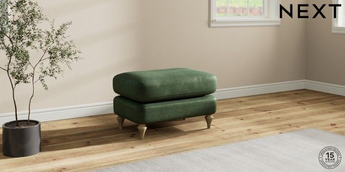 7.0.3 Buy Sadie Deep Relaxed Sit Footstool Luxe Chenille Dark Green High Slim Turned - Light from the Next UK online shop Click here to use our accessible website