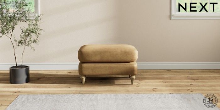 6.12.1 Buy Sadie Deep Relaxed Sit Footstool Luxe Chenille Honey Yellow High Slim Turned - Light from the Next UK online shop Click here to use our accessible website