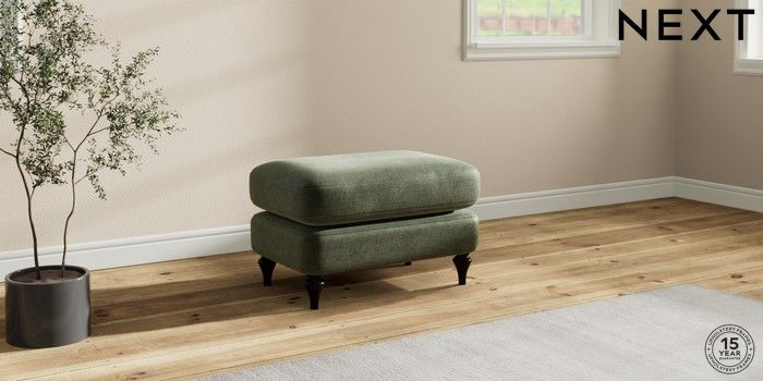 7.0.3 Buy Sadie Deep Relaxed Sit Footstool Luxe Chenille Mid Green High Slim Turned - Dark from the Next UK online shop Click here to use our accessible website