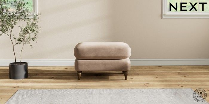 6.12.1 Buy Sadie Deep Relaxed Sit Footstool Luxe Chenille Mid Natural High Slim Turned - Mid from the Next UK online shop Click here to use our accessible website