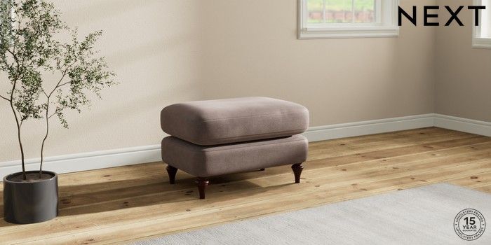 7.0.3 Buy Sadie Deep Relaxed Sit Footstool Luxe Chenille Mink Brown High Slim Turned - Dark Brown from the Next UK online shop Click here to use our accessible website