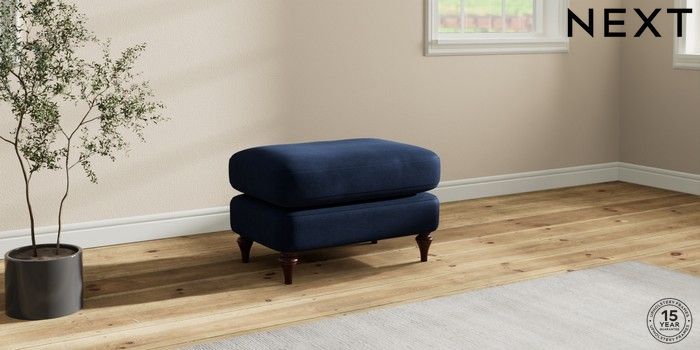 7.0.3 Buy Sadie Deep Relaxed Sit Footstool Luxe Chenille Navy Blue High Slim Turned - Dark Brown from the Next UK online shop Click here to use our accessible website