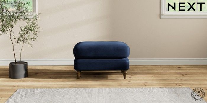 6.12.1 Buy Sadie Deep Relaxed Sit Footstool Luxe Chenille Navy Blue High Slim Turned - Mid from the Next UK online shop Click here to use our accessible website