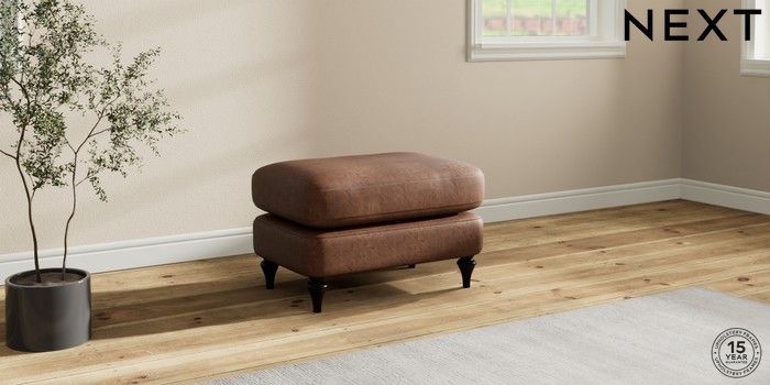 7.0.3 Buy Sadie Deep Relaxed Sit Footstool Monza Faux Leather Easy Clean Chestnut Brown High Slim Turned - Dark from the Next UK online shop Click here to use our accessible website