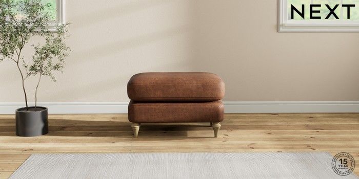 6.12.1 Buy Sadie Deep Relaxed Sit Footstool Monza Faux Leather Easy Clean Chestnut Brown High Slim Turned - Light from the Next UK online shop Click here to use our accessible website