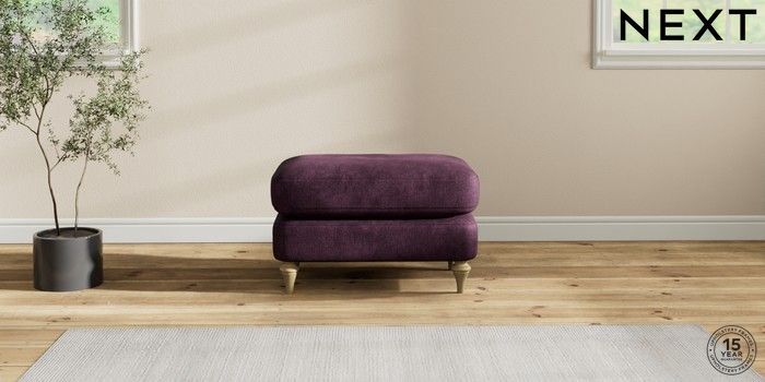 6.12.1 Buy Sadie Deep Relaxed Sit Footstool Plush Chenille Dark Plum Purple High Slim Turned - Light from the Next UK online shop Click here to use our accessible website