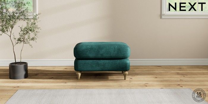 6.12.1 Buy Sadie Deep Relaxed Sit Footstool Plush Chenille Dark Teal Green High Slim Turned - Light from the Next UK online shop Click here to use our accessible website