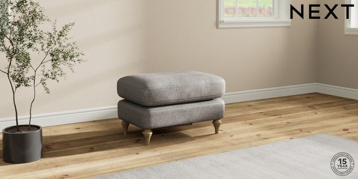 7.0.3 Buy Sadie Deep Relaxed Sit Footstool Plush Chenille Light Grey High Slim Turned - Light from the Next UK online shop Click here to use our accessible website