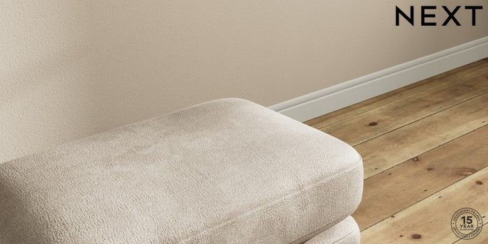 7.0.3 Buy Sadie Deep Relaxed Sit Footstool Plush Chenille Light Natural High Slim Turned - Dark Brown from the Next UK online shop Click here to use our accessible website