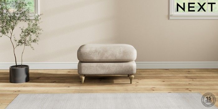6.12.1 Buy Sadie Deep Relaxed Sit Footstool Plush Chenille Light Natural High Slim Turned - Light from the Next UK online shop Click here to use our accessible website