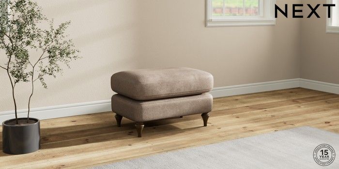 7.0.3 Buy Sadie Deep Relaxed Sit Footstool Plush Chenille Mid Natural High Slim Turned - Mid from the Next UK online shop Click here to use our accessible website