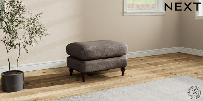7.0.3 Buy Sadie Deep Relaxed Sit Footstool Plush Chenille Mink Brown High Slim Turned - Dark Brown from the Next UK online shop Click here to use our accessible website
