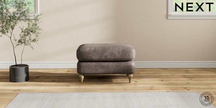 6.12.1 Buy Sadie Deep Relaxed Sit Footstool Plush Chenille Mink Brown High Slim Turned - Light from the Next UK online shop Click here to use our accessible website