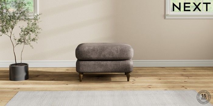 6.12.1 Buy Sadie Deep Relaxed Sit Footstool Plush Chenille Mink Brown High Slim Turned - Mid from the Next UK online shop Click here to use our accessible website