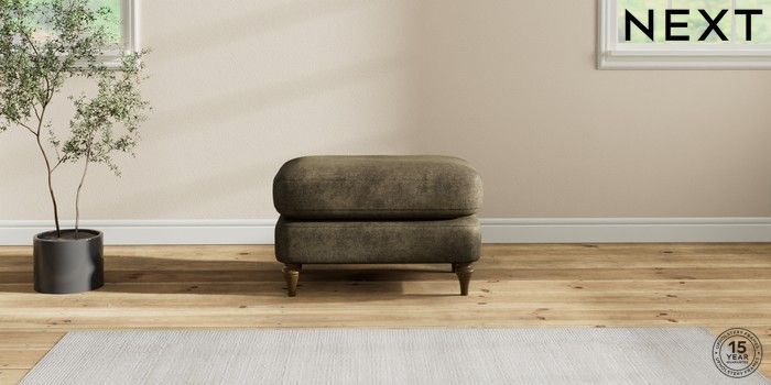6.12.1 Buy Sadie Deep Relaxed Sit Footstool Plush Chenille Moss Green High Slim Turned - Mid from the Next UK online shop Click here to use our accessible website