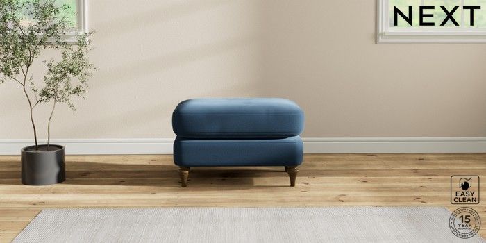 6.12.1 Buy Sadie Deep Relaxed Sit Footstool Plush Velvet Easy Clean Airforce Blue High Slim Turned - Mid from the Next UK online shop Click here to use our accessible website