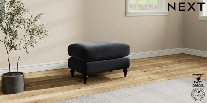7.0.3 Buy Sadie Deep Relaxed Sit Footstool Plush Velvet Easy Clean Charcoal Grey High Slim Turned - Dark from the Next UK online shop Click here to use our accessible website