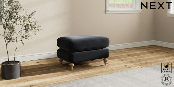 7.0.3 Buy Sadie Deep Relaxed Sit Footstool Plush Velvet Easy Clean Charcoal Grey High Slim Turned - Light from the Next UK online shop Click here to use our accessible website