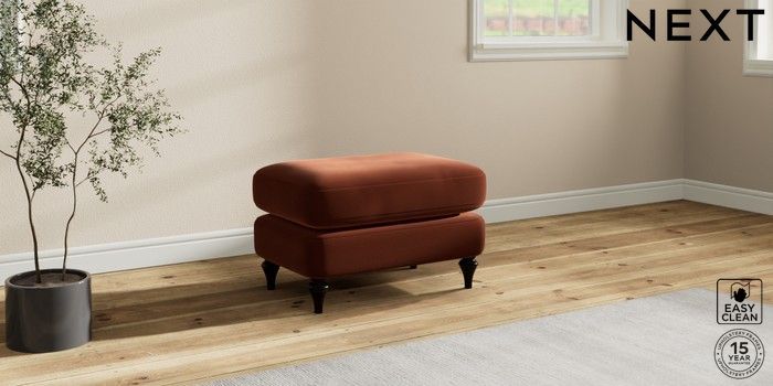 7.0.3 Buy Sadie Deep Relaxed Sit Footstool Plush Velvet Easy Clean Ginger Orange High Slim Turned - Dark from the Next UK online shop Click here to use our accessible website