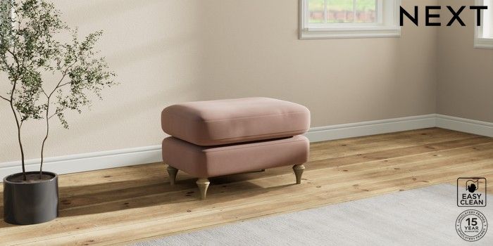 7.0.3 Buy Sadie Deep Relaxed Sit Footstool Plush Velvet Easy Clean Mid Natural High Slim Turned - Light from the Next UK online shop Click here to use our accessible website