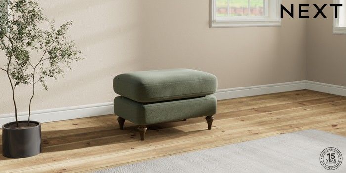 7.0.3 Buy Sadie Deep Relaxed Sit Footstool Relaxed Linen Look Dark Green High Slim Turned - Mid from the Next UK online shop Click here to use our accessible website
