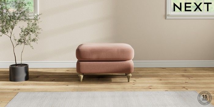 6.12.1 Buy Sadie Deep Relaxed Sit Footstool Relaxed Linen Look Light Rust Brown High Slim Turned - Light from the Next UK online shop Click here to use our accessible website