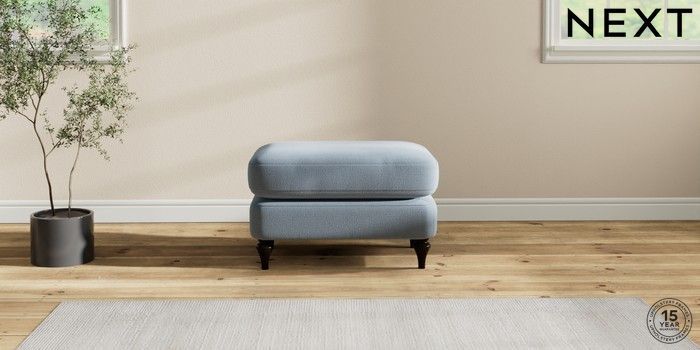 6.12.1 Buy Sadie Deep Relaxed Sit Footstool Relaxed Linen Look Mid Blue High Slim Turned - Dark from the Next UK online shop Click here to use our accessible website