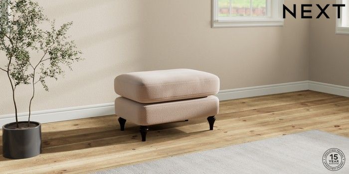 7.0.3 Buy Sadie Deep Relaxed Sit Footstool Relaxed Linen Look Mid Natural High Slim Turned - Dark from the Next UK online shop Click here to use our accessible website