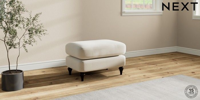7.0.3 Buy Sadie Deep Relaxed Sit Footstool Relaxed Linen Look Oyster High Slim Turned - Dark from the Next UK online shop Click here to use our accessible website