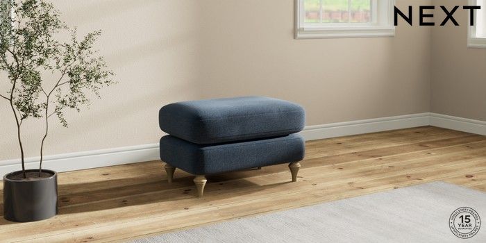 7.0.3 Buy Sadie Deep Relaxed Sit Footstool Ripple Chenille Dark Blue High Slim Turned - Light from the Next UK online shop Click here to use our accessible website