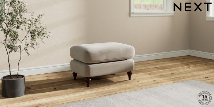 7.0.3 Buy Sadie Deep Relaxed Sit Footstool Ripple Chenille Light Natural High Slim Turned - Dark Brown from the Next UK online shop Click here to use our accessible website