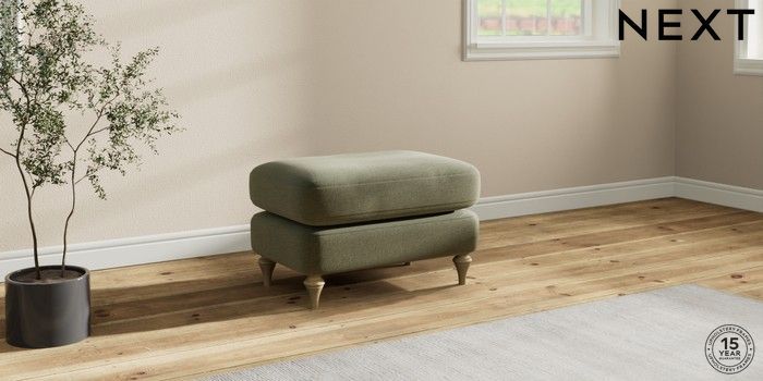 7.0.3 Buy Sadie Deep Relaxed Sit Footstool Ripple Chenille Mid Moss Green High Slim Turned - Light from the Next UK online shop Click here to use our accessible website