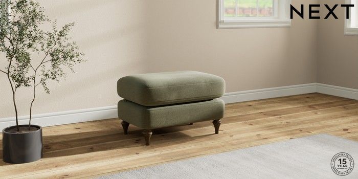 7.0.3 Buy Sadie Deep Relaxed Sit Footstool Ripple Chenille Mid Moss Green High Slim Turned - Mid from the Next UK online shop Click here to use our accessible website