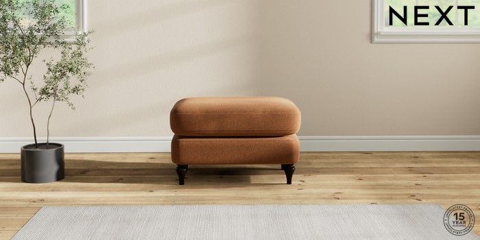 6.12.1 Buy Sadie Deep Relaxed Sit Footstool Ripple Chenille Mid Rust Brown High Slim Turned - Dark from the Next UK online shop Click here to use our accessible website